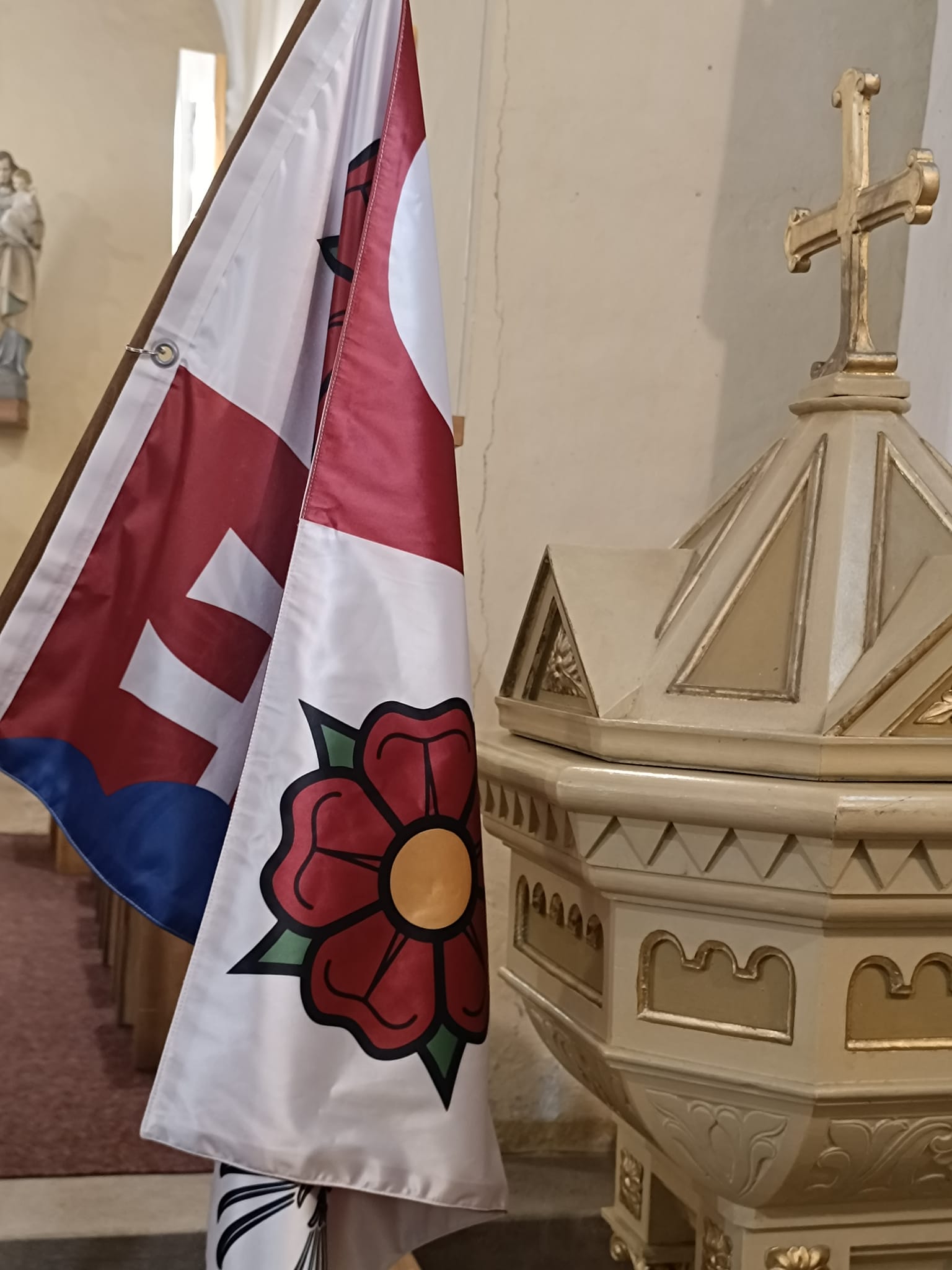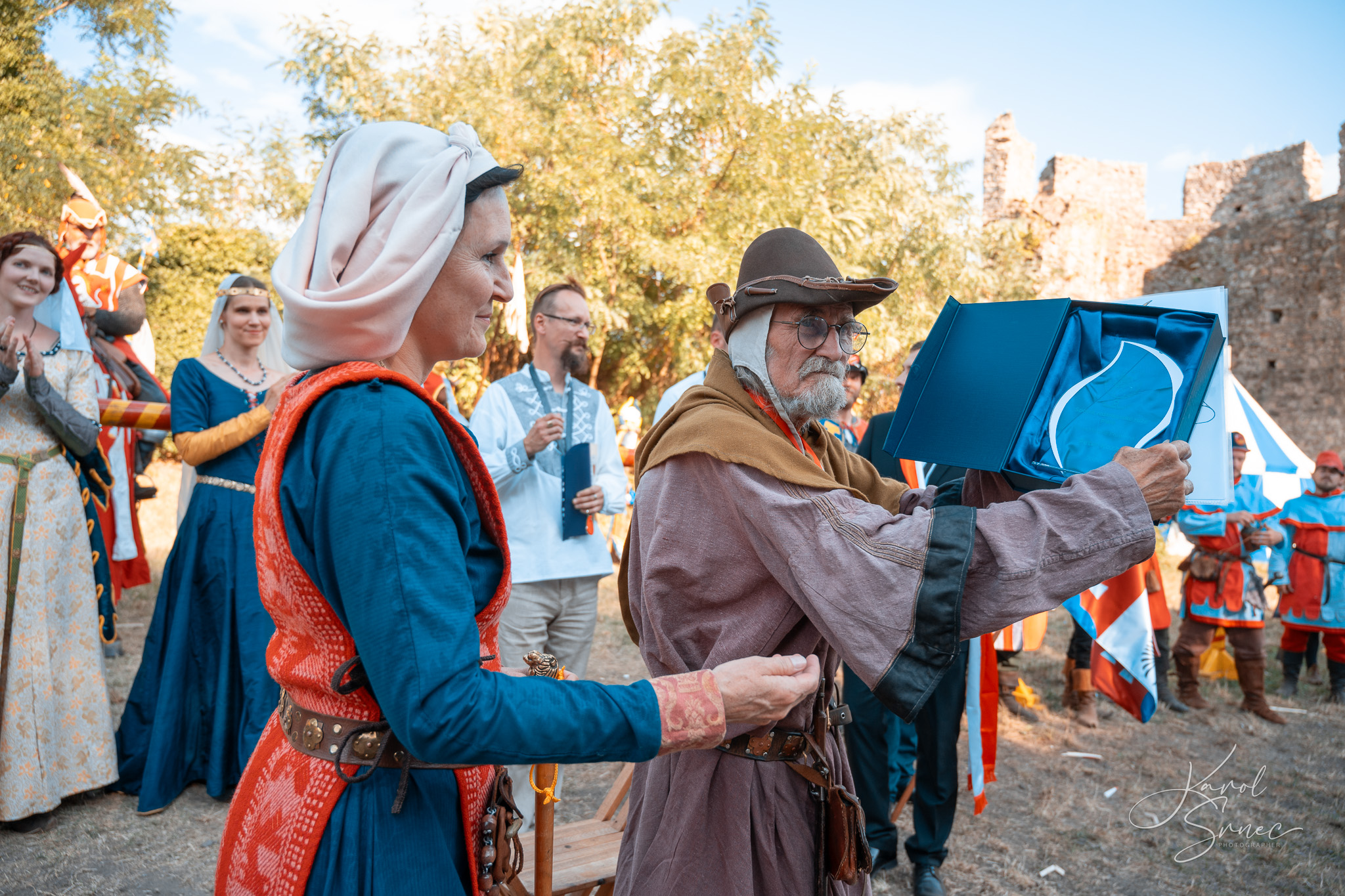 Svěcení praporu slovenské komendy a předání čestného členství a ceny Martina Fruweina Petru Kozovi.