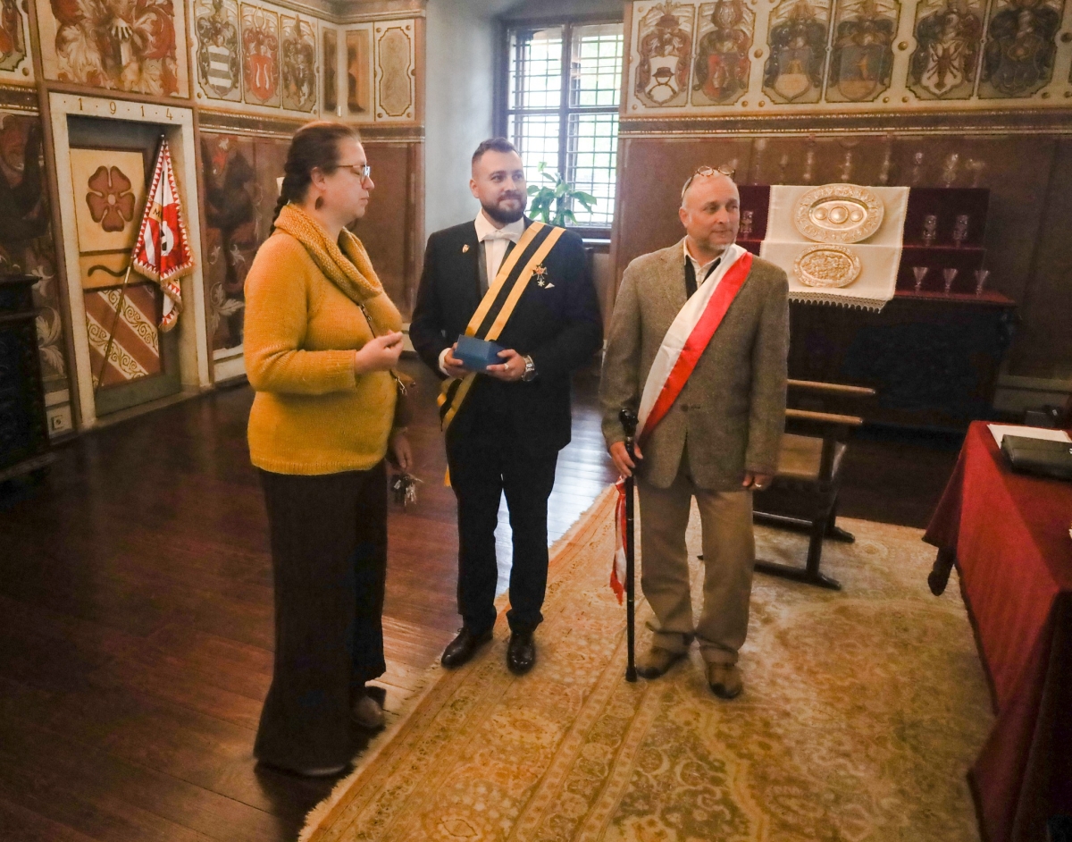 Spolek Rožmberské růže – PWR – Rožmberský řád s úctou propůjčil státnímu zámku Třeboň vzácnou pozlacenou insignii Rožmberského řádu lebky, řádu založeného Petrem Vokem z Rožmberka.