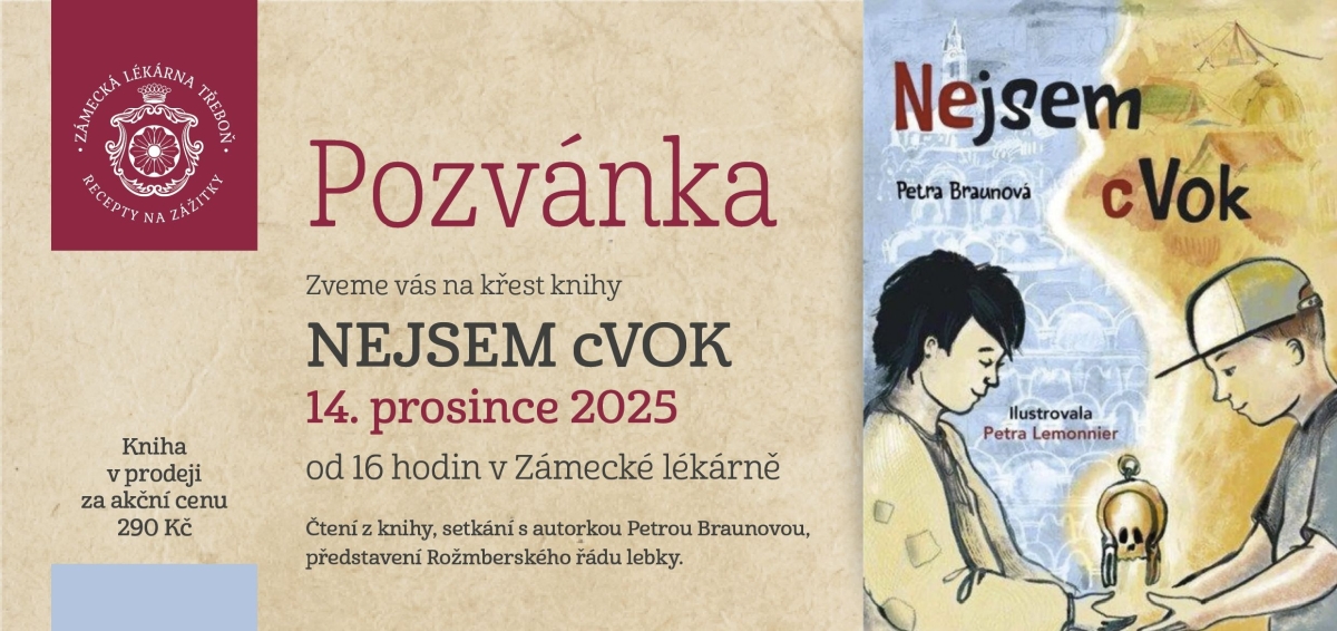 Předseda Spolku Rožmberské růže – PWR a velmistr Rožmberského řádu zlaté lebky byl 14. prosince 2025 pozván na slavnostní křest knihy „Nejsem cVok“, který se uskutečnil v prostorách zámecké lékárny v Třeboni. Tato výjimečná kulturní událost propojila literaturu, historii a genia loci jednoho z nejvýznamnějších rožmberských sídel.